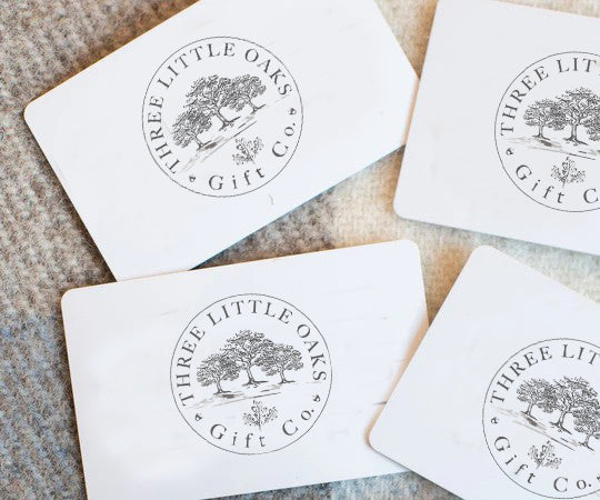 Treat someone special to a world of thoughtful, handcrafted gifts with a Three Little Oaks gift card. Perfect for any occasion, our gift cards let the recipient choose from our carefully curated selection of unique treasures—making every gift personal and meaningful.